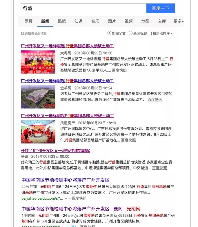 最近,行盛集团被疯狂刷屏,各大主流媒体纷纷点名行盛集团,其中有中央级媒体《光明日报》、广东省主流媒体《羊城晚报》、《广州日报》,网络媒体凤凰网、腾讯网、搜狐网、大粤网、金羊网等。