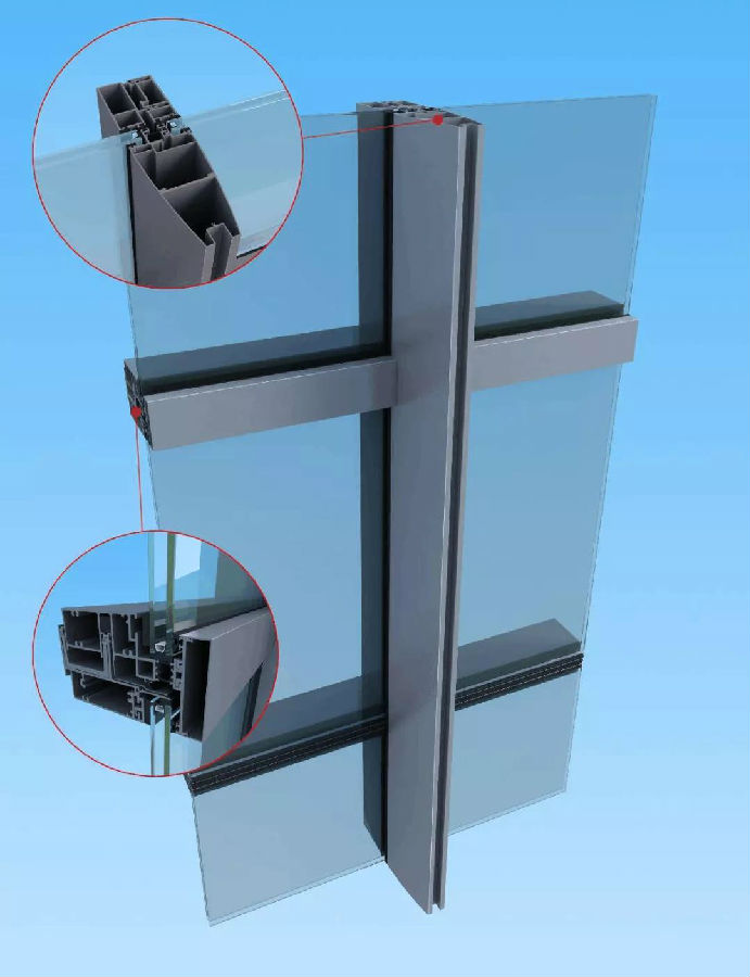 【摘要】缝隙是玻璃幕墙渗漏的主要通道,而缝隙是由相同材料之间和异质材料之间的拼接和连接所形成的,只有认真分析造成渗漏的各种原因,才能做好防水节点的设计。对缝隙作防水处理,空间非常有限,也就意味着缝隙防水构造形式的设计要求和难度很高。玻璃幕墙的铝型材断面设计和合理的节点设计都是保证防水性能的重要因素。